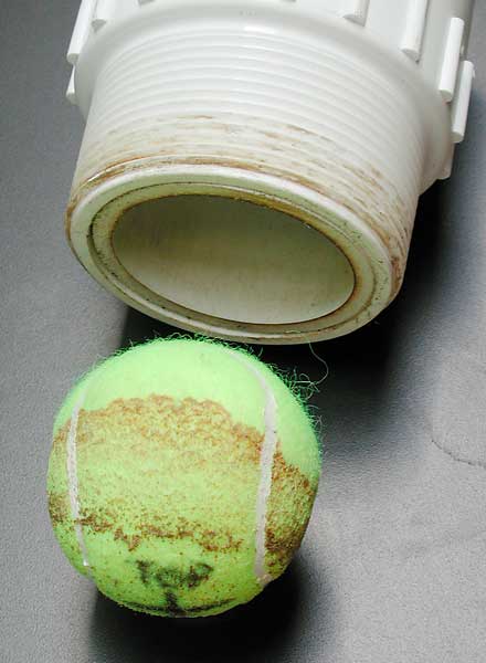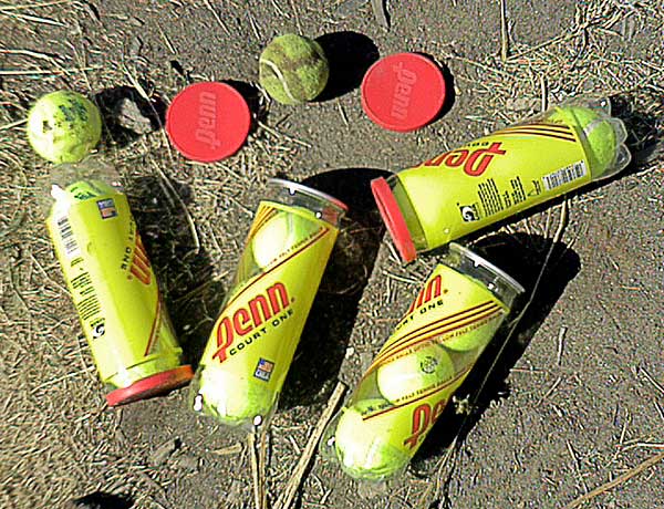 The tennis balls chosen for the test were Penn Court One brand. These are widely available for about 2 bucks a can. The Court One is a recreational ball with a soft core and average durability. The problem with soft or under pressurized tennis balls is that they can deform and let combustion pressure escape past the ball. This is more common on longer barrels and results in slower speeds and an unusually loud report.
