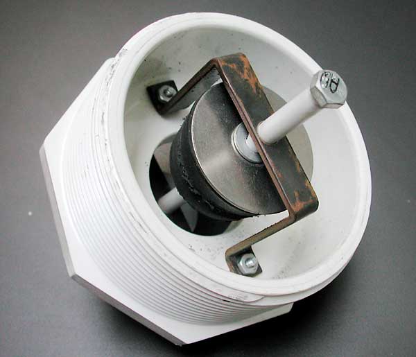 The 4" endcap check valve pictured here was tested extensively before being deemed reliable for this test. Earlier versions had a tendency to leak slightly but revised valves seal the chamber completely. Fluid volume measurements were taken with this valve in place and it did not leak one single drop.