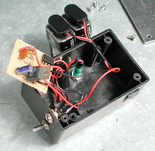 Batteries are required to power your fan in the field which can be cumbersome and expensive. An on/off switch of some type will help conserve batteries. A simple momentary push button switch may be the most elegant solution as a strong fan only needs to be turned on for a few seconds at a time. Rechargeable NiMh batteries can be used to soften the financial blow caused when the fan is accidentally left on. Multiple cells can be wired in series to achieve the required voltage. A typical high quality setup would be 8 AA cells with a momentary switch. Other more expensive battery options are 12v NiMh clusters used in RC cars/planes and cordless drills. The fan controller shown here uses (2) 9v cells to keep the controller small and lightweight and a voltage regulator to control the current. The controller also features a timer circuit which automatically shuts the fan off.